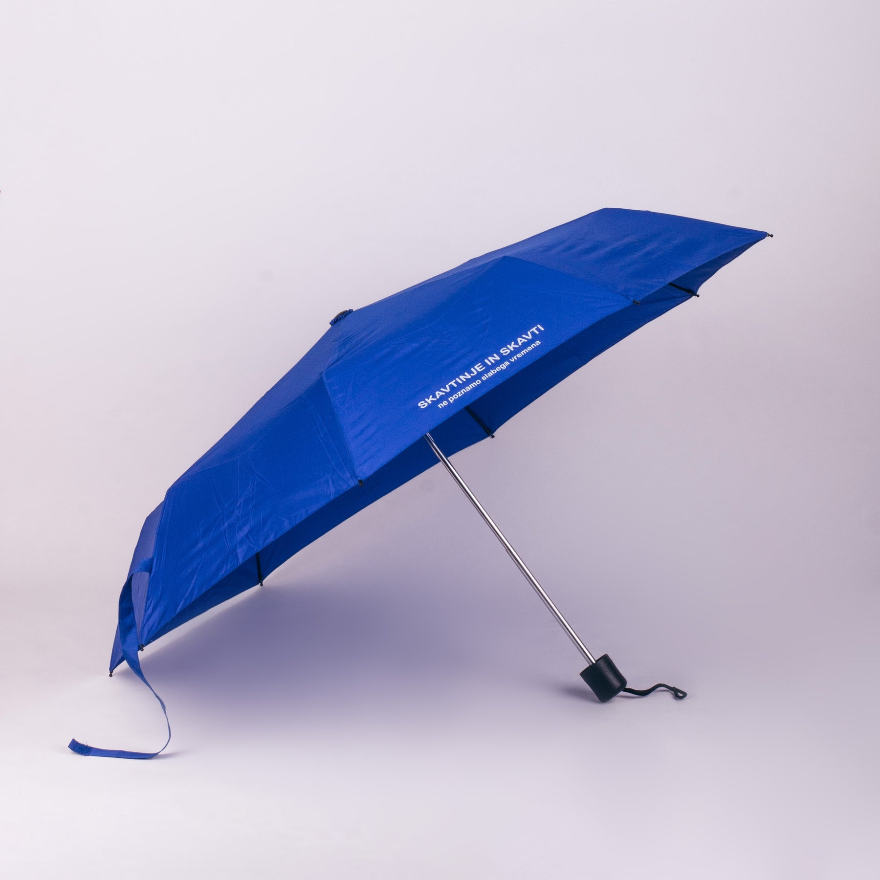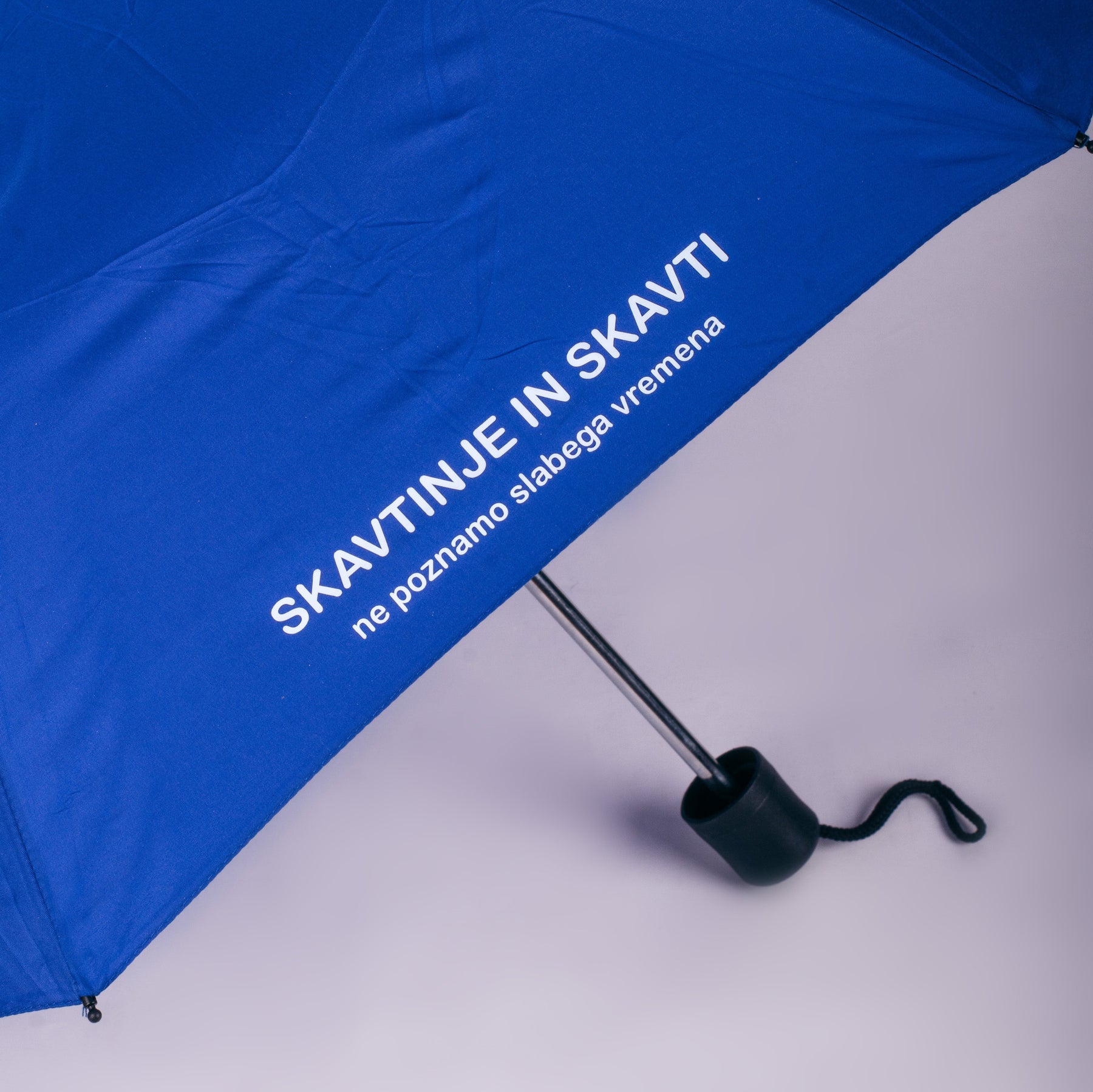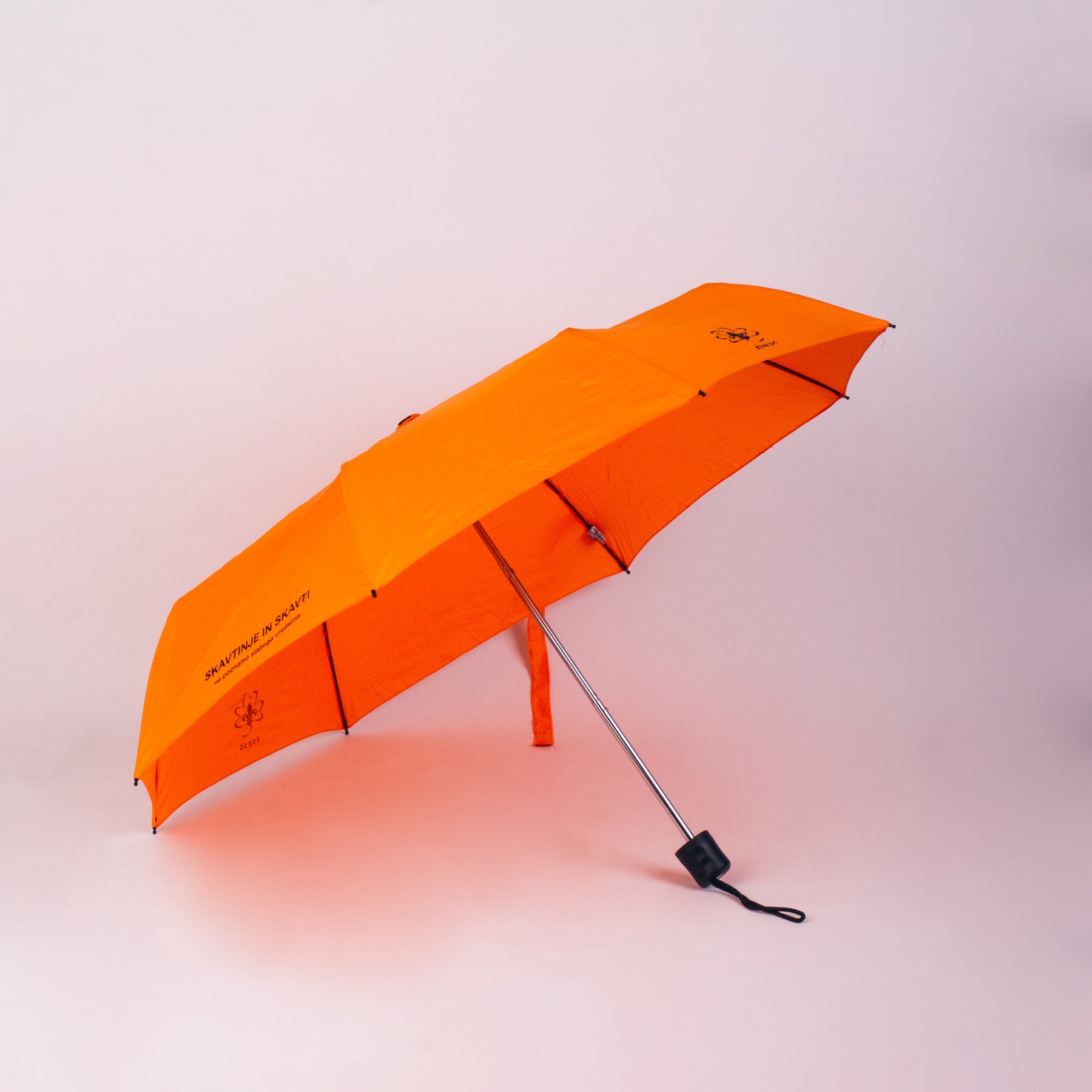 Izdelan z mislijo na skavtske vrednote, ima dežnik trpežno ogrodje, ki prenese močne vetrove, ne da bi se poškodoval. Njegova zunanja plast je obdelana z vodoodpornim premazom, ki učinkovito odbija vodo in pospešuje sušenje. Poleg tega je okrašen z napisom "Skavtinje in skavti ne poznamo slabega vremena", kar izraža pripadnost skavtskemu gibanju in njegovim idealom.
